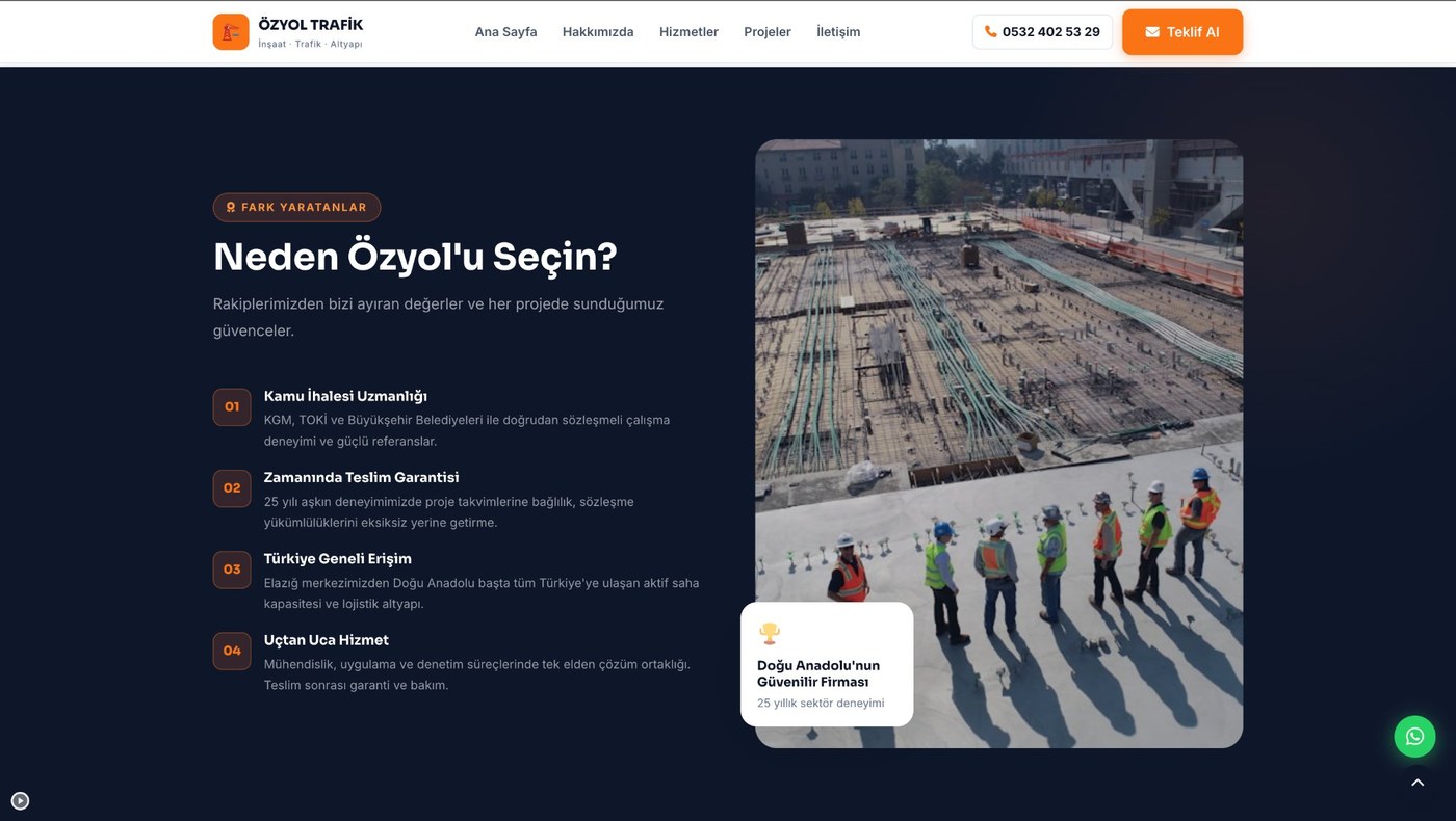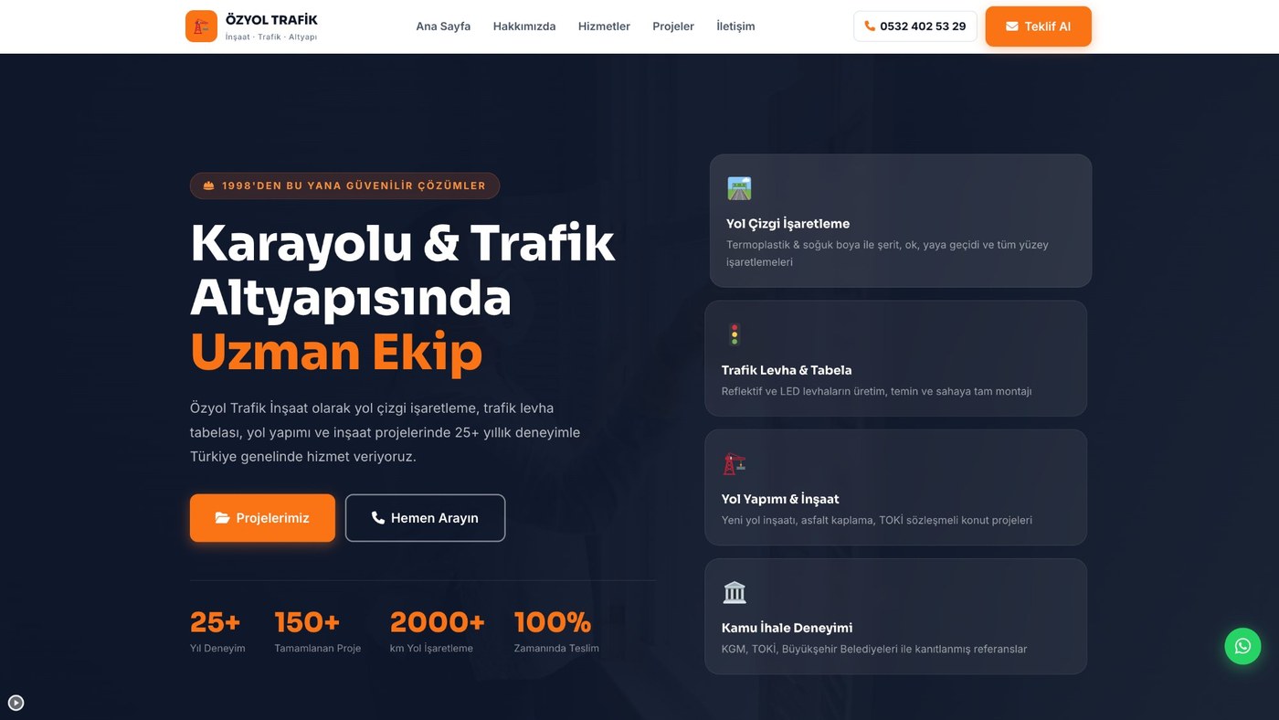 Yol çizgi işaretleme, trafik levha ve inşaat hizmetlerini tek çatıda sunan kurumsal web çözümü.